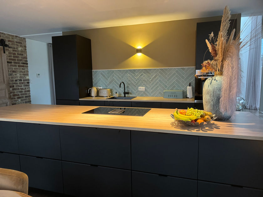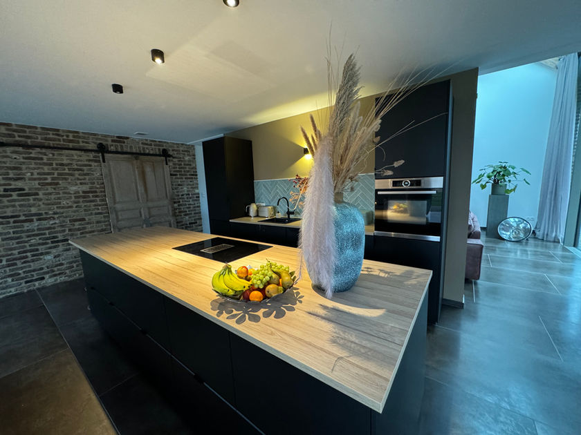 De stijlvolle keuken, met een veldbrandmuur als opvallend kenmerk, een kookeiland, vaatwasser, kookplaat met geïntegreerde afzuiging en een heteluchtoven, vormt een culinair paradijs. Een antieke schuifdeur met een stoer karakter voegt een unieke charme toe. Naast de keuken bevindt zich een praktische bijkeuken. De keuken biedt toegang tot de tuin, waar je kunt genieten van het uitzicht op de paarden terwijl je maaltijden bereidt.